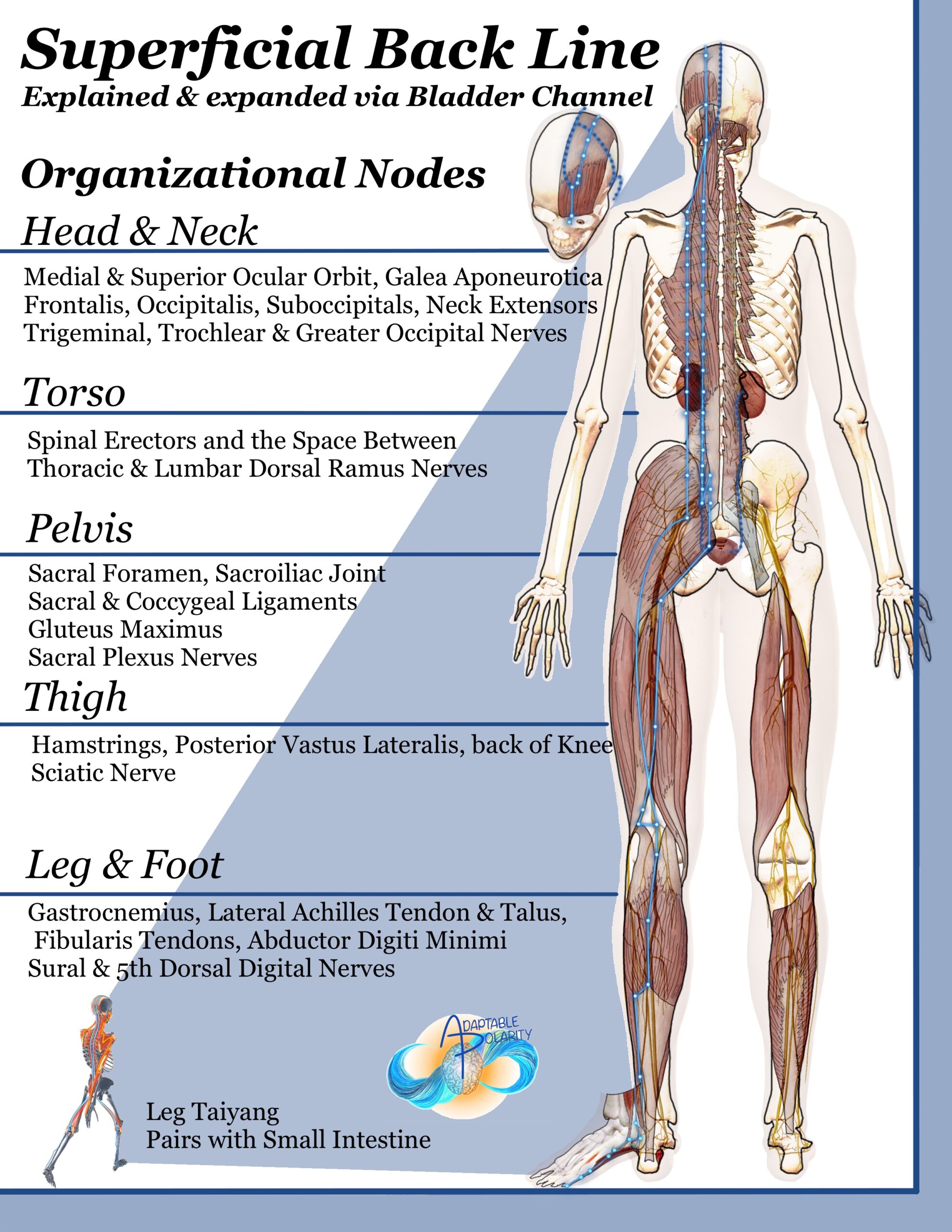 A series of 14 images (or could be posters) compiled into a PDF tracing the fascial pathways through the body not of “energy” or “woo-woo,” but of the human architecture and structures and channels that make us human. It is all there in the architecture, and it seems worthwhile to study a healing tradition that has been around for 5000 years.